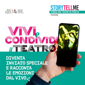 Il Comune di Manfredonia, socio del Teatro Pubblico Pugliese (TPP), partecipa attivamente all’ottava edizione di “Storytellme”, il progetto innovativo che mira a coinvolgere le nuove generazioni nel racconto delle stagioni teatrali pugliesi. Per la stagione 2024/2025, “Storytellme” offre agli appassionati di teatro, fotografia e videomaking amatoriale l’opportunità di diventare storyteller ufficiali degli spettacoli in programma.