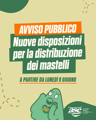 ASE SpA: nuove disposizioni per la distribuzione dei mastelli a partire da lunedì 9 giugno