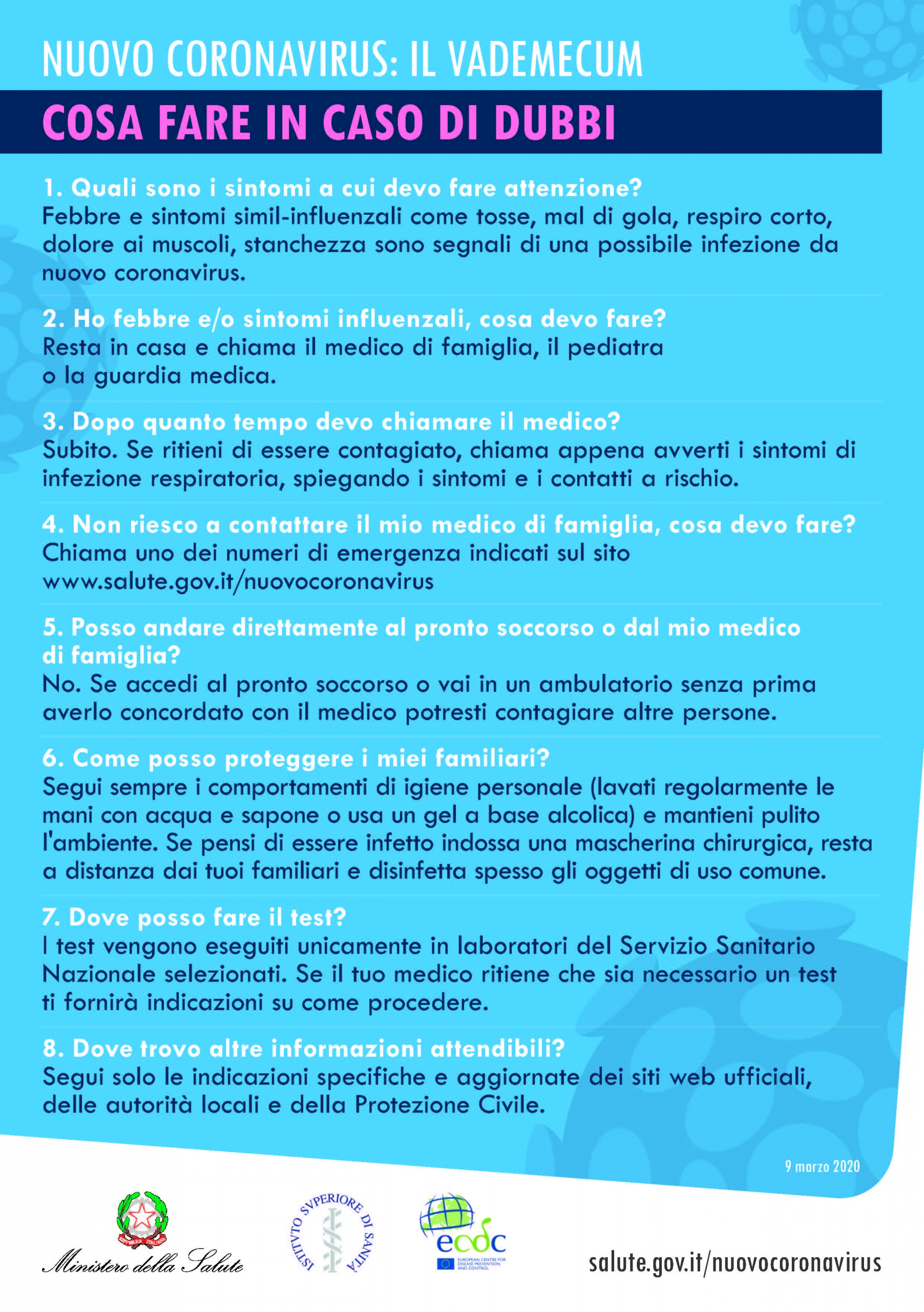 – Chi proviene da regioni in cui sono segnalati casi di contagio deve contattare il proprio medico o il Servizio Igiene e Sanità Pubblica dell’Azienda Sanitaria Locale territorialmente competente al fine di permettere l’esercizio dei poteri di sorveglianza.