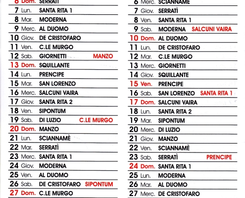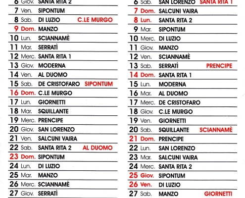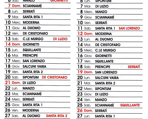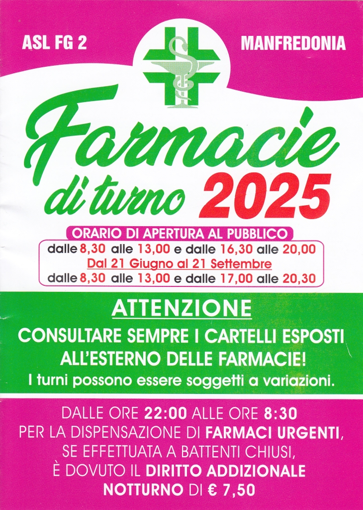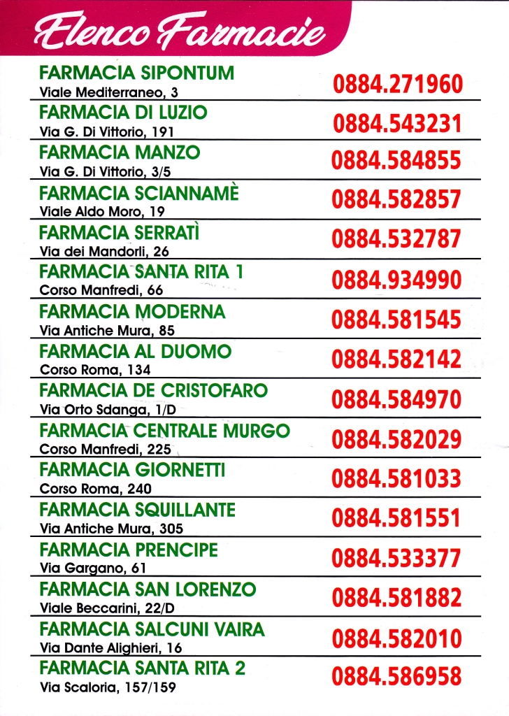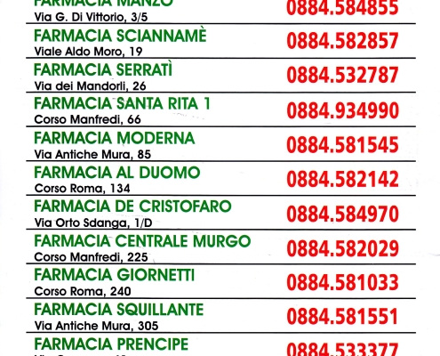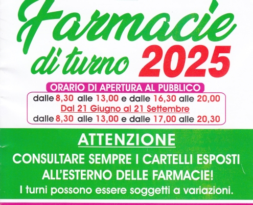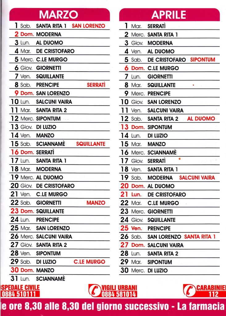 La farmacia segnata in nero effettua il turno dalle ore 8,30 alle 8,30 del giorno successivo – La farmacia segnata in rosso solo in orario normale di apertura
