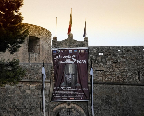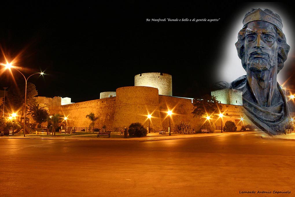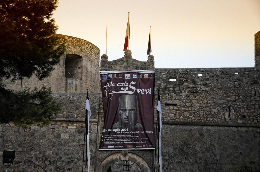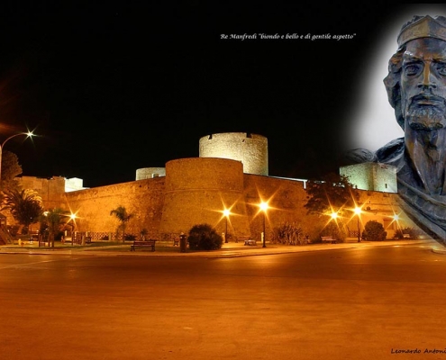 Il castello di Manfredonia si connota sotto il profilo architettonico per un’impronta di chiara marca sveva caratterizzata dalla estrema regolarità geometrica e dalla linearità delle strutture, elementi questi che lo accomunano ad analoghi modelli difensivi realizzati dagli Svevi. Ma se sul piano comparativo il Castello di Manfredonia, denuncia una evidente “facies sveva”, a livello documentario esso e da attribuire a Carlo I d’Angio. Infatti i primi documenti che parlano del Castello di Manfredonia provengono proprio dalla Cancelleria angioina e risalgono all’aprile del 1279. In essi si fa riferimento al reclutamento di manodopera specializzata per l’inizio dei lavori. Certo non e da escludere l’ipotesi che gli angioini abbiano usufruito di strutture preesistenti, riferibili a Manfredi, e che le abbiano poi inserite in un progetto più organico e definitivo.