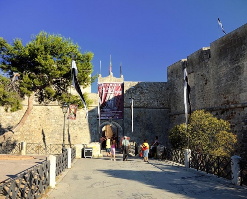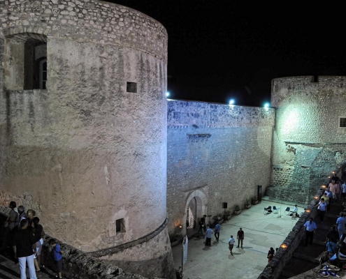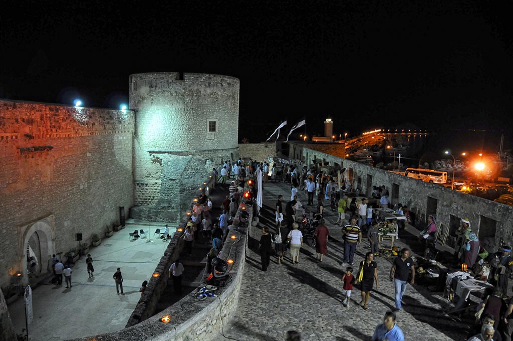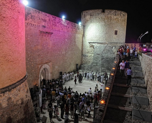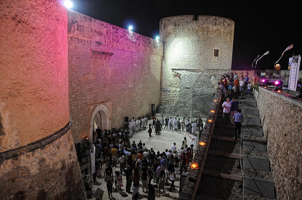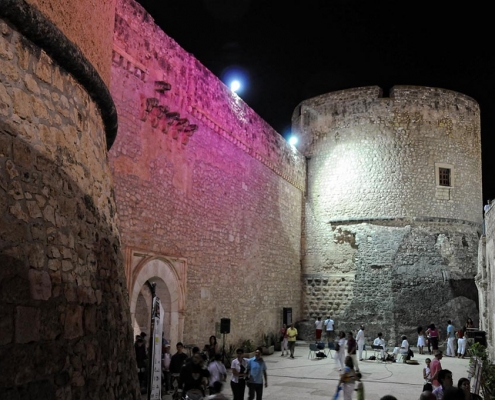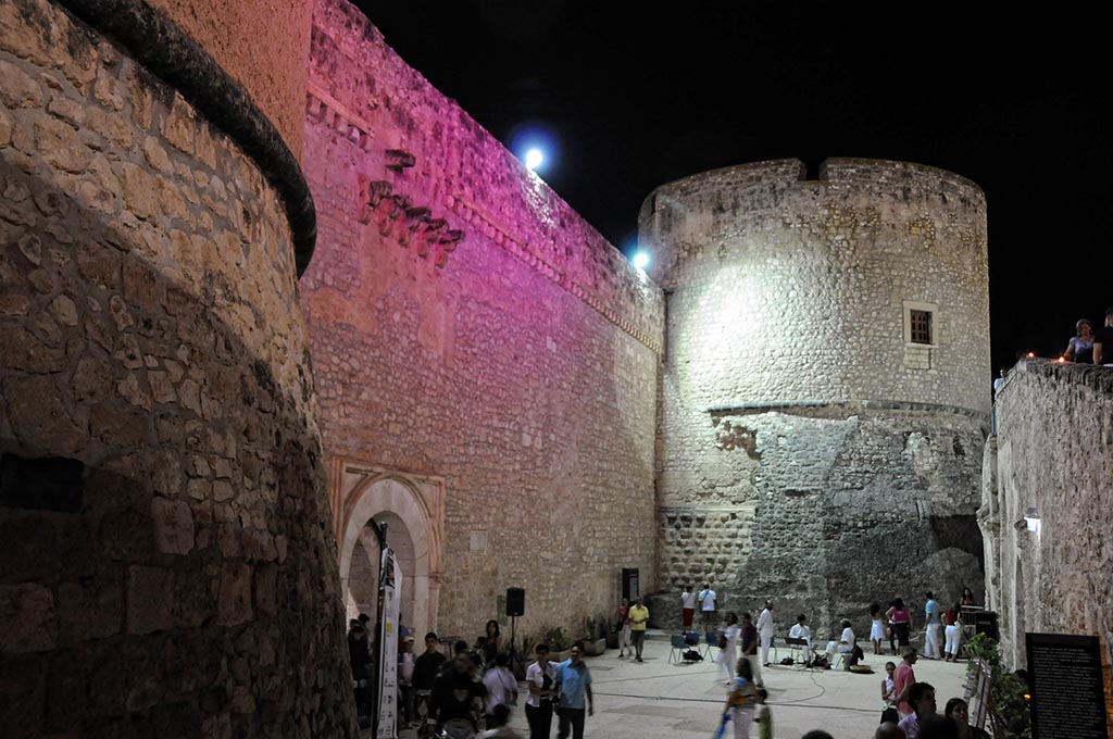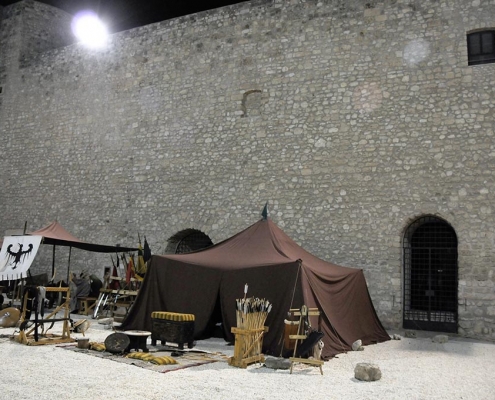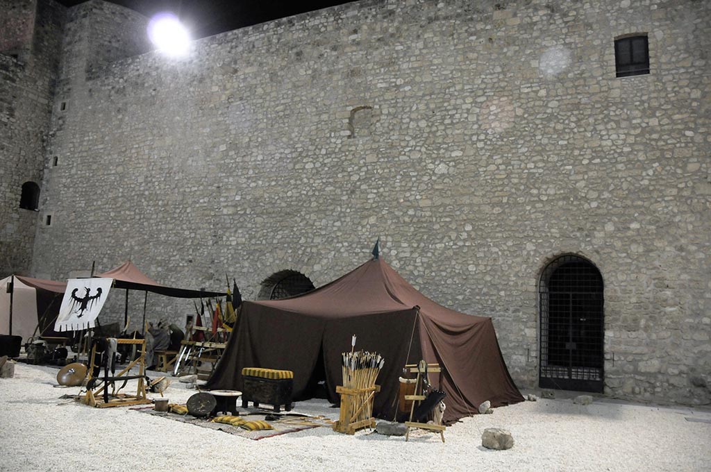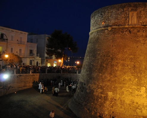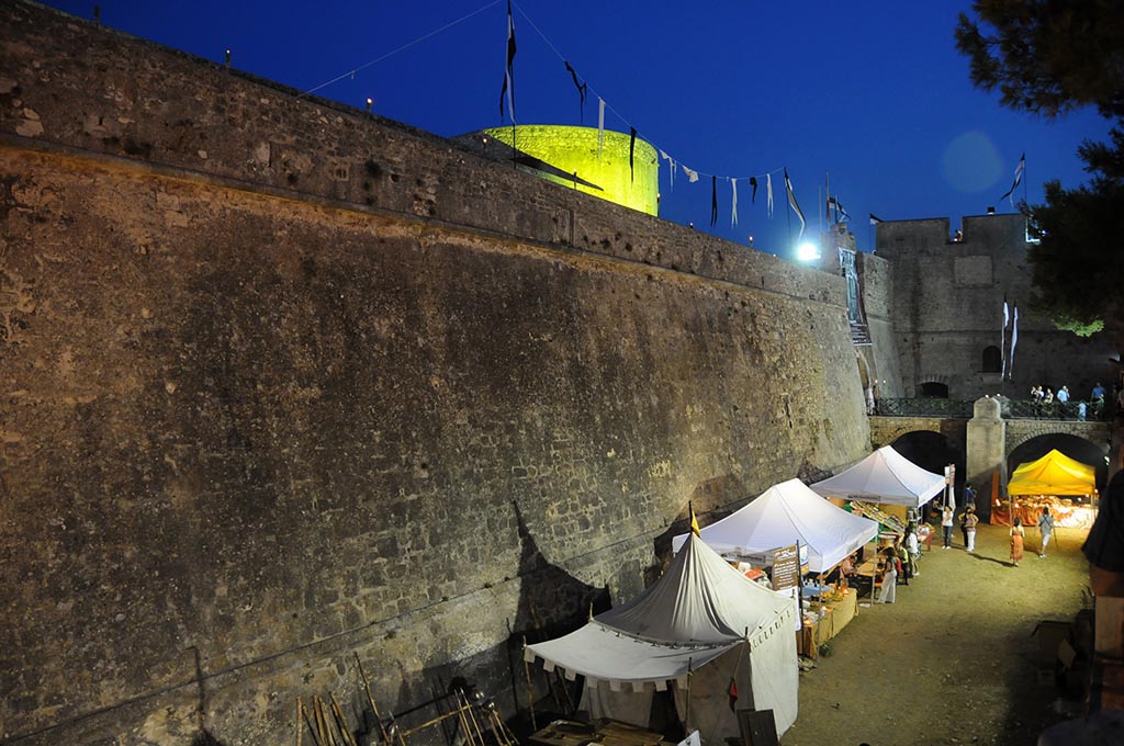 Con il governo della casa d’Aragona, (1442), si assiste ad un ulteriore processo di visibile trasformazione del Castello. Negli ultimi anni del XV secolo, infatti, gli Aragonesi, all’interno di un complessivo progetto di fortificazione delle strutture difensive delle più importanti città costiere, dispongono per il Castello di Manfredonia la costruzione di una nuova cortina muraria inglobante la struttura primitiva. A queste mura viene data una leggera inclinazione a scarpa tale da renderle più rispondenti alle mutate esigenze dell’arte difensiva conseguenti all’uso dell’artiglieria.