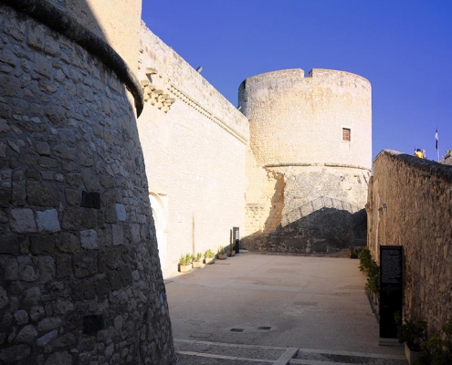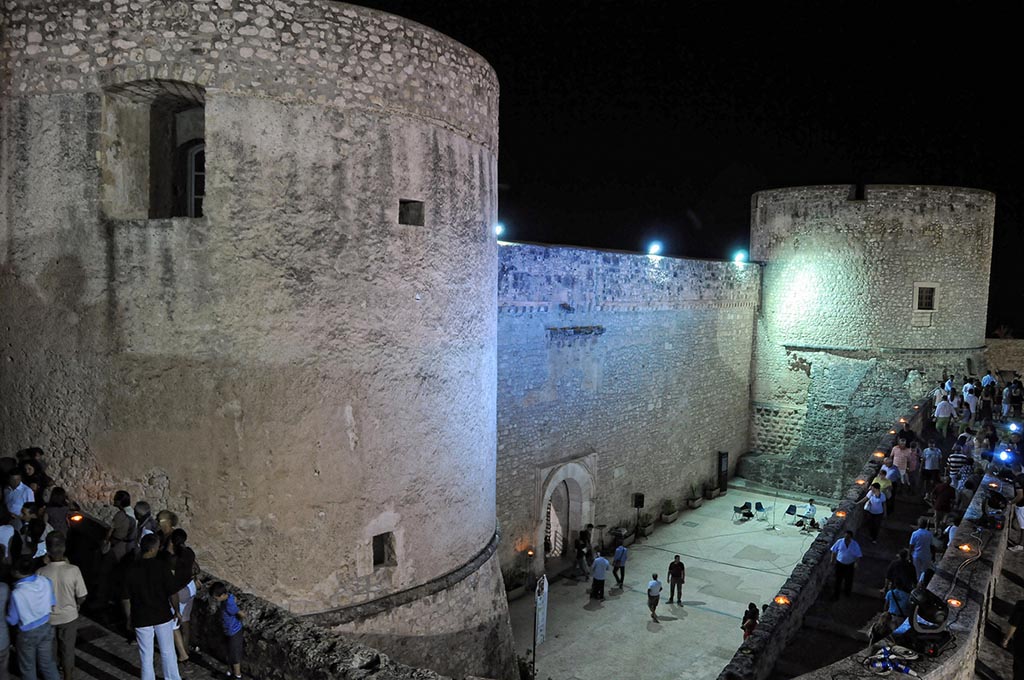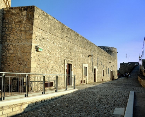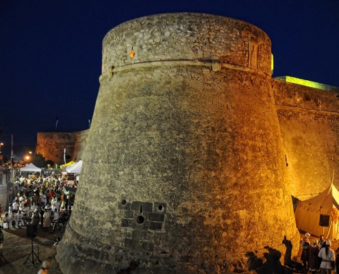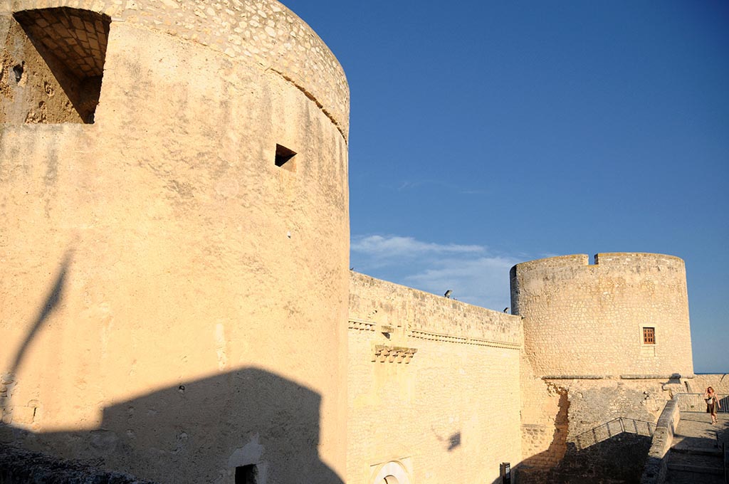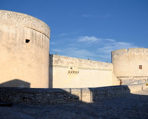 Agli angoli di questa nuova cortina muraria vengono posti quattro torrioni cilindrici casamattati, questa volta più bassi di quelli del recinto interno, più idonei alle nuove tecniche di difesa. La costruzione del grosso bastione posto ad Ovest del Castello, denominato dell'”Avanzata” o dell'”Annunziata”, segna per l’edificio un’altra tappa nella storia della sua edificazione. Con esso l’immagine del Castello risulta finalmente essere rispondente alla realtà attuale. Il bastione, realizzato attraverso l’inglobamento della precedente torre circolare, probabilmente all’indomani dell’assedio messo in atto nel 1528 dal maresciallo Lautrec, doveva servire come elemento di difesa per attacchi nemici provenienti dalla città. Il programma di inglobamento, che avrebbe dovuto interessare anche gli altri torrioni della cinta muraria esterna, non fu portato a termine. Non ci è dato conoscere i motivi che sospesero questo programma, ma certamente su tale decisione dovette influire la convinzione che il proseguimento dell’opera di trasformazione non avrebbe comunque impedito la capitolazione del Castello di fronte ad un nemico ben armato. Nel 1620, infatti, sotto il fuoco dei tiratori turchi appostati sugli edifici più alti della città, il Castello dovette capitolare a causa anche della esiguità dei pezzi di artiglieria e perché privo di parapetti protettivi sufficientemente alti a garantire l’incolumità dei difensori.