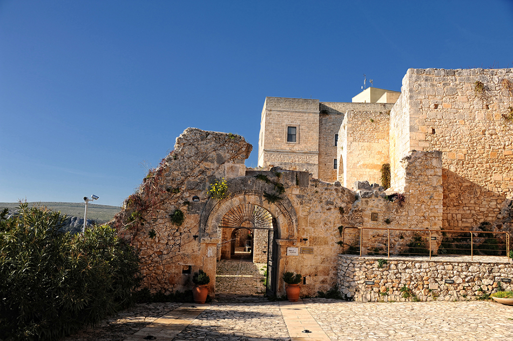 Costoro incontravano per primo il Complesso di S. Leonardo in Lama Volara (sec. XII), costruito dai Cavalieri Teutonici e comprendente la chiesa, il monastero ed un ospedale in cui ricevevano cure e cibo. La chiesa è un mirabile esempio di romanico pugliese, dal portale riccamente istoriato con un apparato iconografico tratto dalla Bibbia.