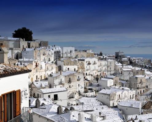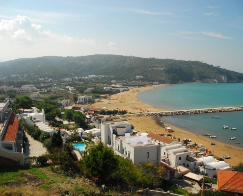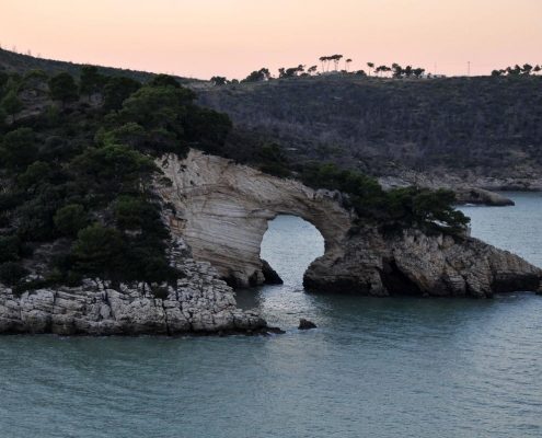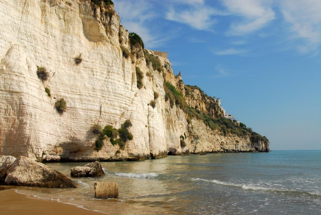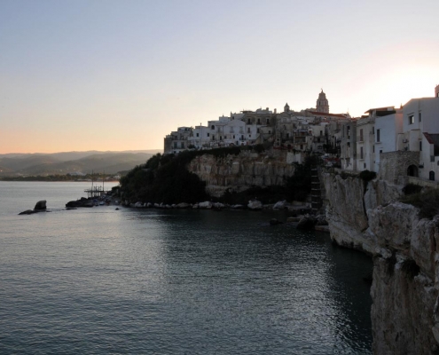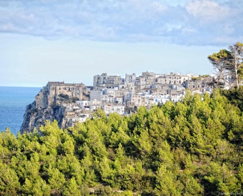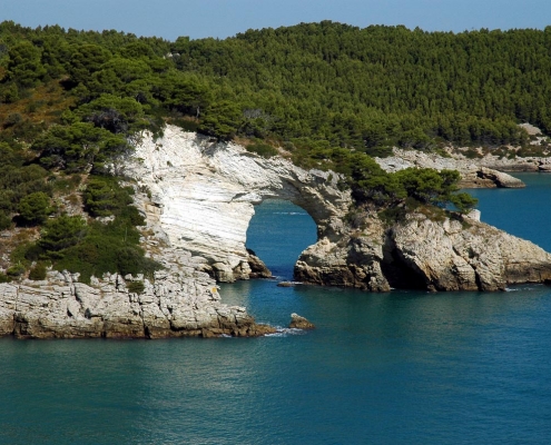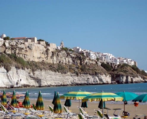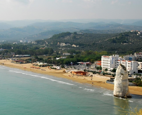 A 60 Km da Manfredonia sorge Vieste (mt. 75), il centro più importante del turismo balneare del Gargano; annunciata dal Pizzomunno, monolite calcareo alto 26 metri svettante sul mare, Vieste rappresenta la punta più orientale del Gargano, protesa nell’Adriatico.