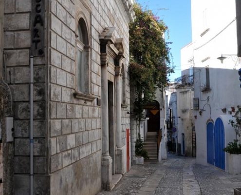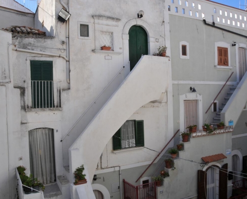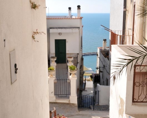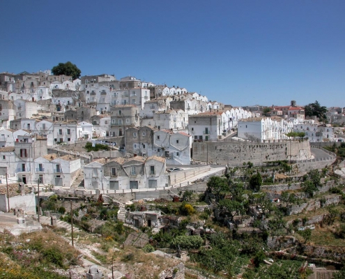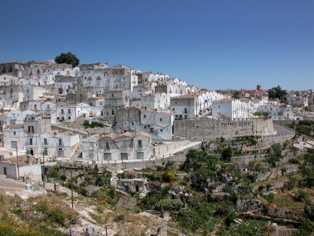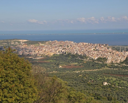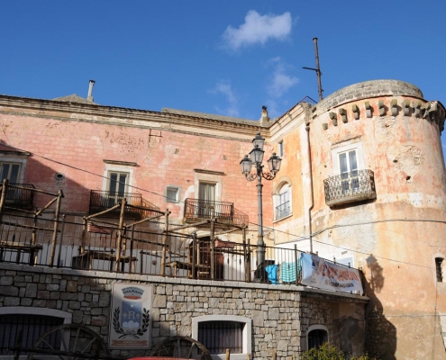 L’abitato è adagiato su una rupe a picco sul mare e si è sviluppato attorno al castello normanno-svevo del XIII secolo, poi trasformato in Palazzo Baronale. Piene di fascino orientale sono le casette bianche del centro storico con i tetti a cupoletta di taglio arabo.