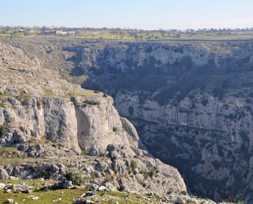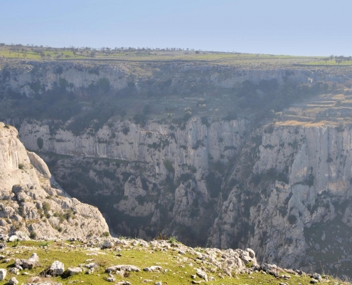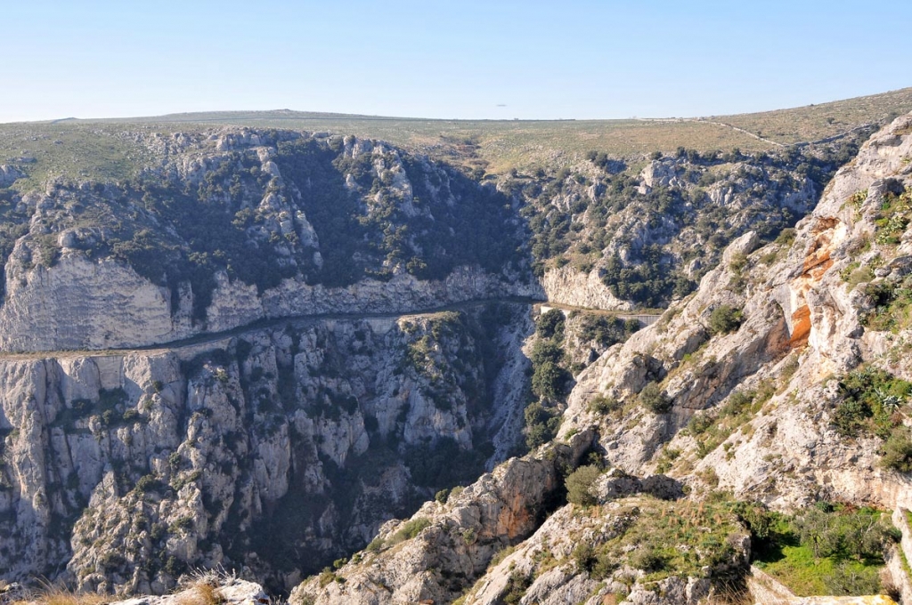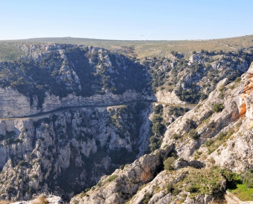 2B) A chi invece intenda attraversare il Promontorio dall’interno, sempre partendo da Manfredonia, si consiglia di prendere la strada provinciale per San Giovanni Rotondo; giunti ad un bivio, svoltare a destra imboccando la strada per la montagna che, attraverso una serie di tornanti, conduce prima ad uno stupendo Belvedere (al Km 8), dal quale la vista spazia su tutto il golfo, e poi alla Frazione Montagna – S. Salvatore, caratteristico borgo rurale ove i ritmi di vita sono quelli scanditi dal lavoro della terra. Proseguendo oltre, si giunge ad un’ampia vallata carsica con al centro una sorta di inghiottitoio che raccoglie le acque piovane: è la Grava di Campolato, la più profonda della Puglia con i suoi 300 metri di estensione; è percorribile però solo da esperti speleologi provvisti di adeguata attrezzatura.