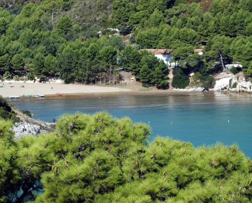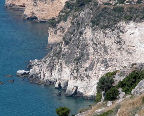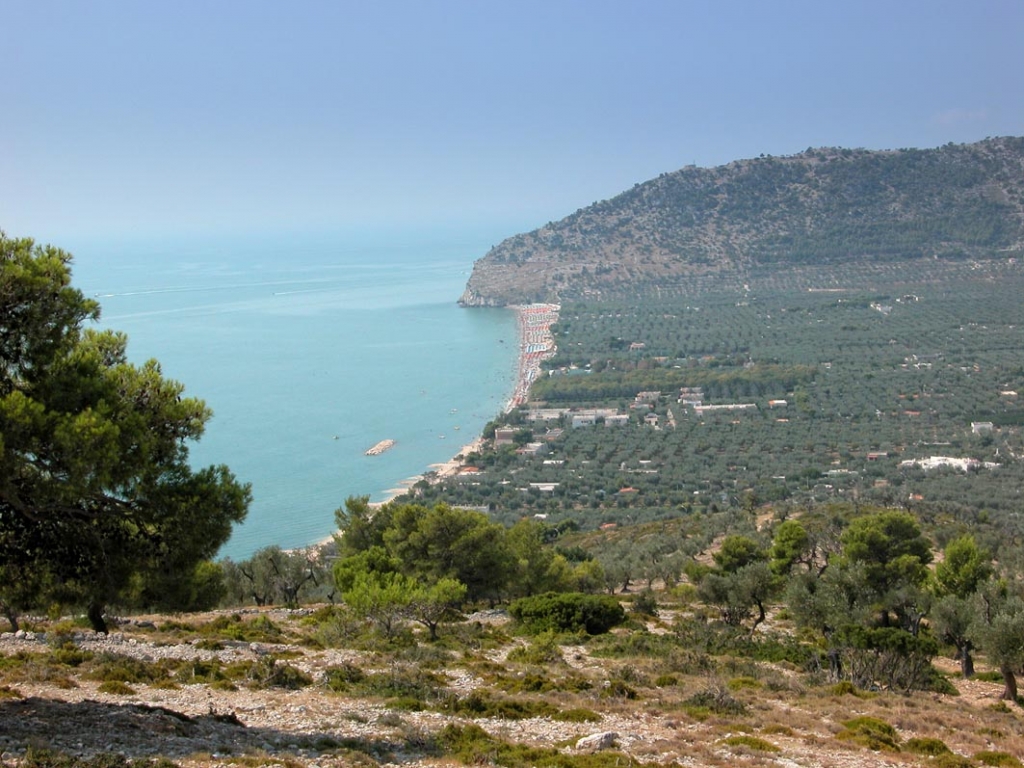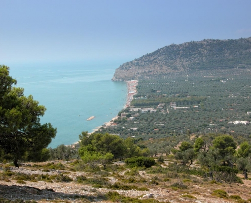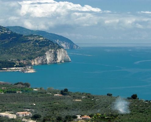 Di fronte svetta Monte Calvo, la cima più alta del Gargano con i suoi 1055 metri.