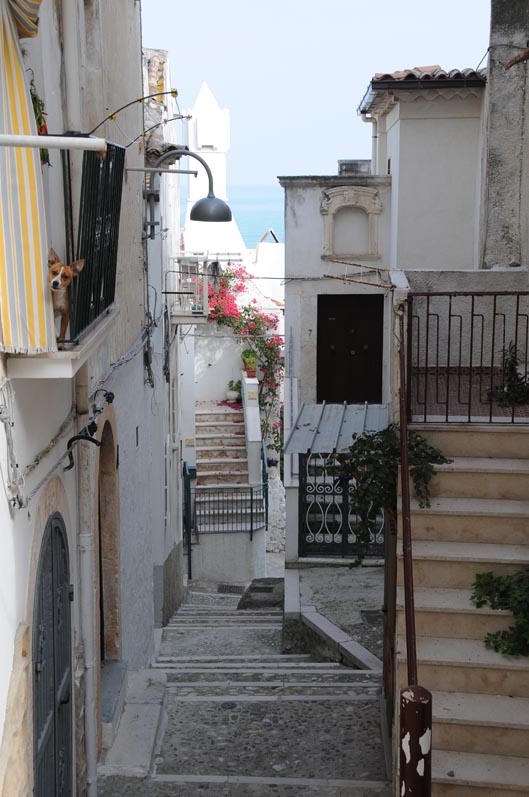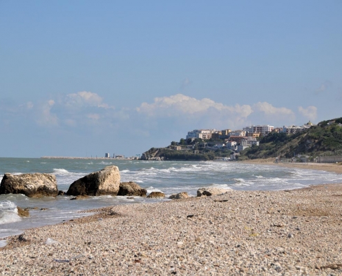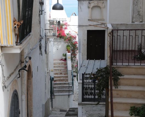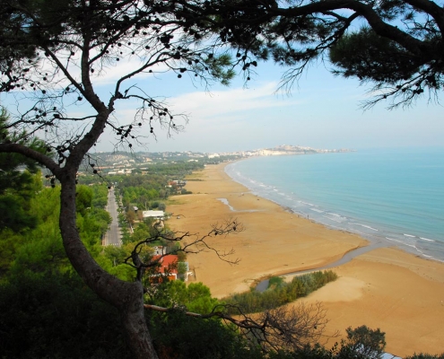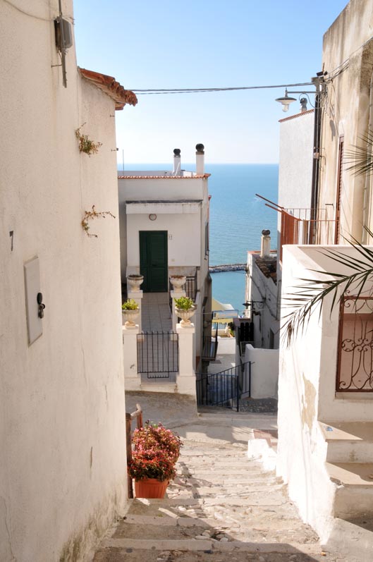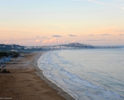 Da Vieste, proseguendo lungo la litoranea, dopo 21 chilometri di costa a picco sul mare intervallati dalle torri costiere di Ponticello, Sfinale e Calalunga, si giunge a Peschici (mt. 90), che in lingua slava significa “sabbia fine”, colonia di Schiavoni fondata nel X secolo dall’Imperatore Ottone di Sassonia per liberare la costa infestata dai Saraceni.